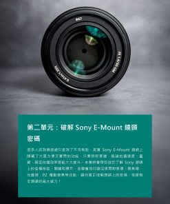 從機身結構、按鍵功能到觀景器與螢幕操作,本單元帶你全面了解 Sony α 相機的設計與操作邏輯。你將學會正確使用各種實體按鈕、模式轉盤與 Fn 快速選單,掌握觀景與螢幕顯示的切換方式,理解為何相機比手機更能呈現高品質影像,為攝影學習打下穩固基礎。 - 第二單元:破解 Sony E-Mount 鏡頭密碼