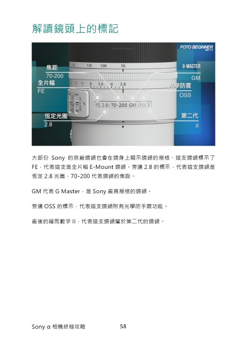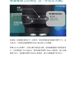 深入剖析 Sony E-Mount 鏡頭的標示與結構,從 FE/E 鏡頭的分別,到焦距、光圈與 OSS 防震等符號的解讀。介紹光圈環、變焦環、對焦環、IRIS Lock、CLICK 開關與 Power Zoom 操作,讓你能靈活運用鏡頭特性,發揮最佳拍攝表現。 - 第三單元:重設相機與認識基本選單