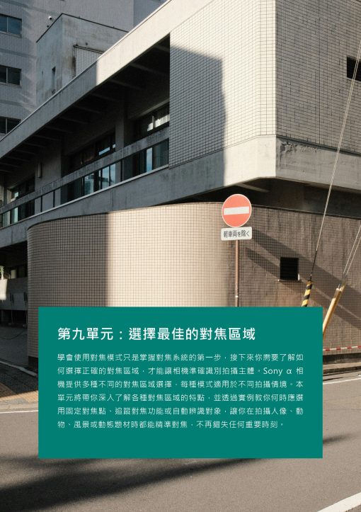 介紹 AF-S、AF-C、AF-A 等不同自動對焦模式的特性與應用,並說明預先對焦與臉部偵測的運作原理。幫助你在靜態與動態拍攝中都能保持清晰準確的對焦。 - 第九單元:選擇最佳的對焦區域